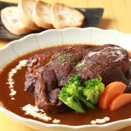 じっくり煮込んだ豚肩ロースが絶品!厳選された豚肩ロースを、赤ワインと香味野菜でじっくりと煮込んだ、贅沢な逸品です。口の中でとろけるような柔らかさと、凝縮された豚肉の旨味が、至福のひとときをお届けします。
